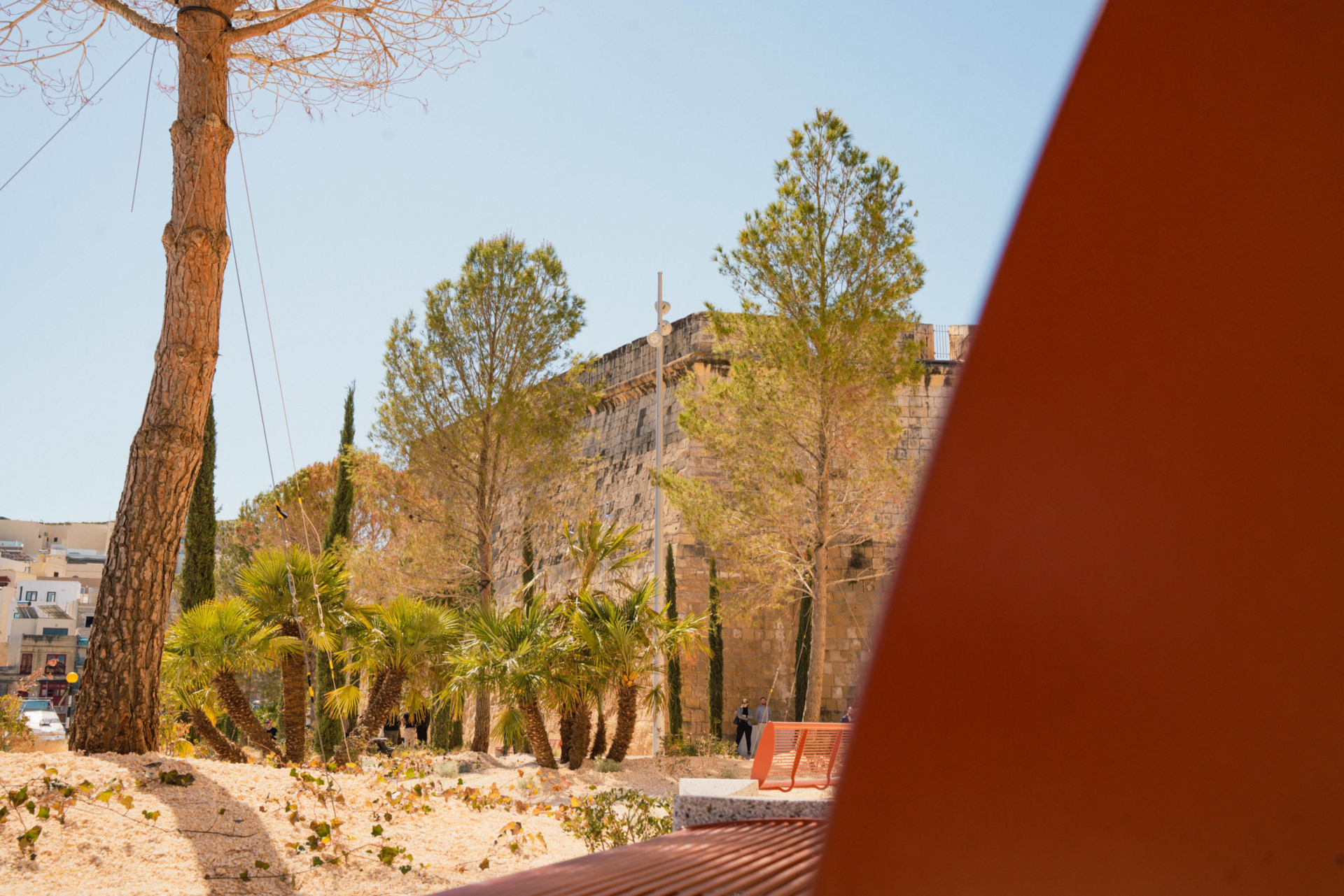 The project consists of a garden of 1,500 metres, featuring pathways among Mediterranean plants, benches and picnic tables, as well as shaded areas under pine trees. The garden is also designed to host community activities and social gatherings. The proposal was developed in consultation with the Birgu Local Council to reflect residents’ needs.