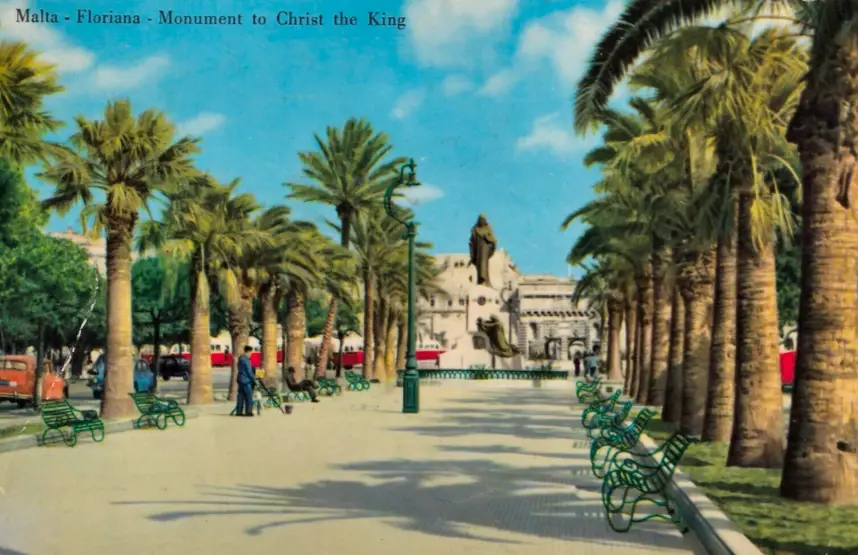 The area beyond the Valletta land front ditch and Triton Square is commonly known as the Biskuttin, now ithing the council boundaries of Floriana. It’s a wide and paved avenue lined with benches and trees that bisects Vjal ir-Re Dwardu VII. Its main feature is the imposing bronze statue of Christ the King by Antonio Sciortino, with a kneeling figure at the base representing the devotion of Malta to the Christian religion. This monumental statue was erected to commemorate the XXIV Eucharistic Congress held in Malta in 1913. Its strange name is reputed to have different origins but the most obvious is that since it’s a continuation of the Mall, which had been converted into a landscaped garden, many referred to this extension as ‘boseottino‘ (little garden) or Biskuttin in Maltese. In Maltese, the name Biskuttin also refers to an elongated pastry with rounded ends, of which the area does bear a resemblance.