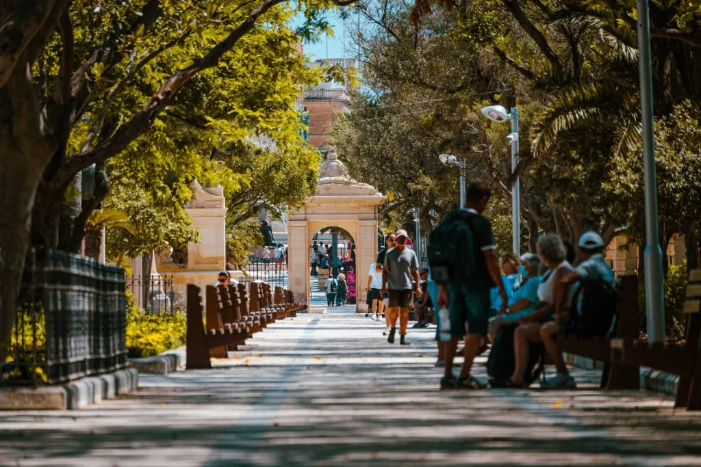 The garden was opened to the public by Sir Alexander Ball, Governor of Maltese Islands, in the name of King George III. Until the year 1942, the gardens were enclosed by high walls but, after the war, the high eight-course on each side wall was removed and replaced by a lower boundary wall with iron railings to be visible from the street. In late 2021 the Grand Harbour Regeneration Corporation (GHRC) commenced a €5 million regeneration project for the Mall Garden at Floriana, a link to connect the Argotti area with the Biskuttin, Triton Square the entrance into Valletta.