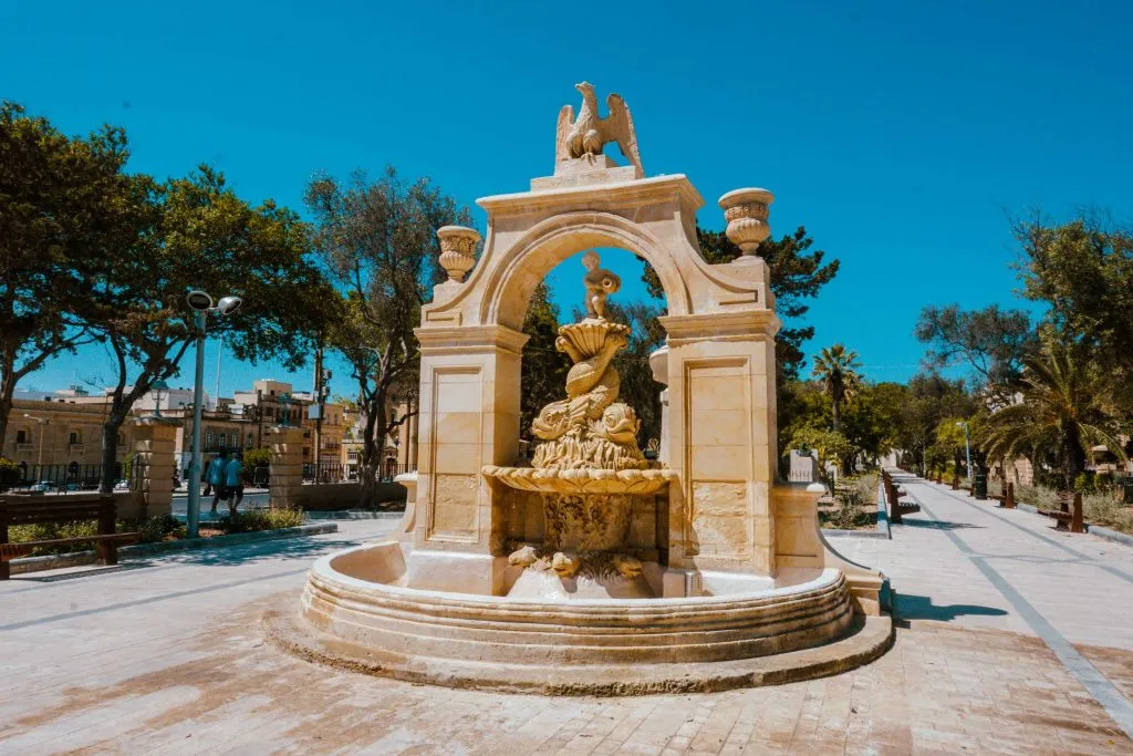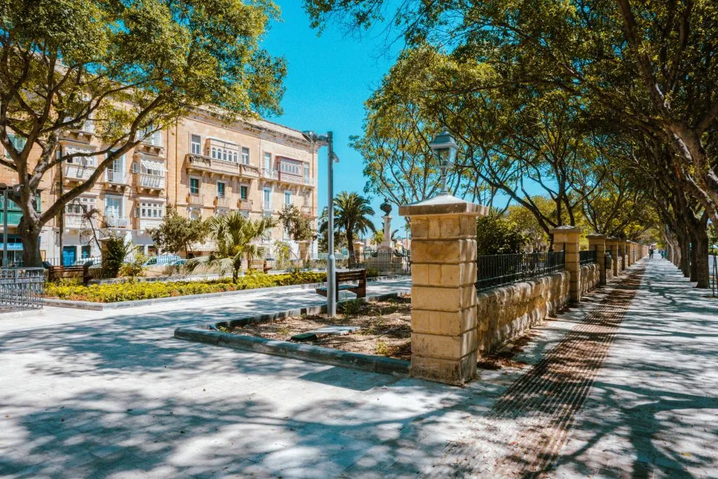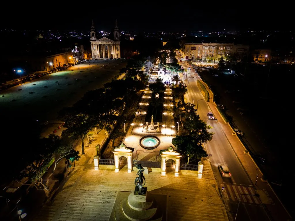 An interesting feature about the Mall is that it lies along an axis stretching from St Philip Bastion at Floriana, along Republic Street in Valletta and which ends at the spur of Fort St. Elmo at the bottom of the same street.