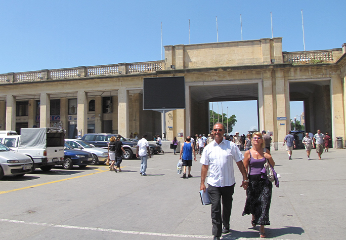 The main landward entrance into Valletta was Porta San Giorgio or as better known as Porta Reale, which commenced in 1566 and was completed in 1569 by the Order of St. John to designs of Francesco Laparelli or of Girolamo Cassar, located between St. James’ and St. John’s Bastions. In 1586, additions were made to the gate and renamed Porta Reale, including a wooden drawbridge across the deep ditch.
